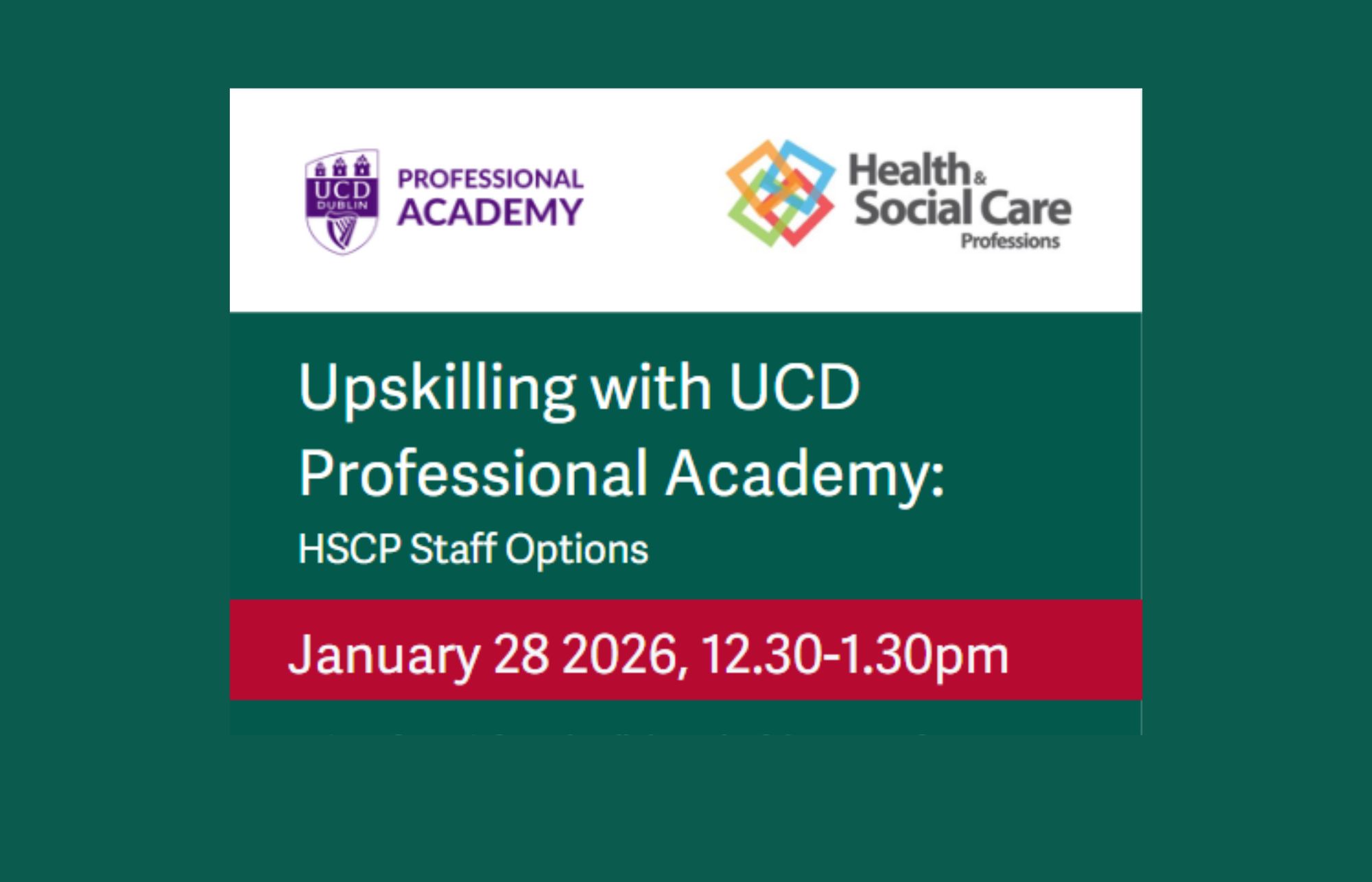 You are invited to attend a lunchtime information webinar on Wednesday 28th of January 12:30-1:30pm over Zoom provided by UCD Professional Academy to give an overview of the course offering and funding application process.