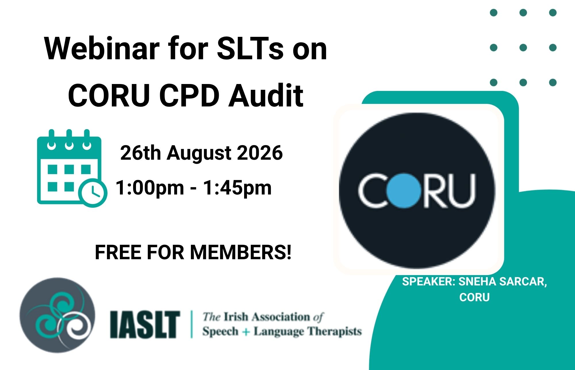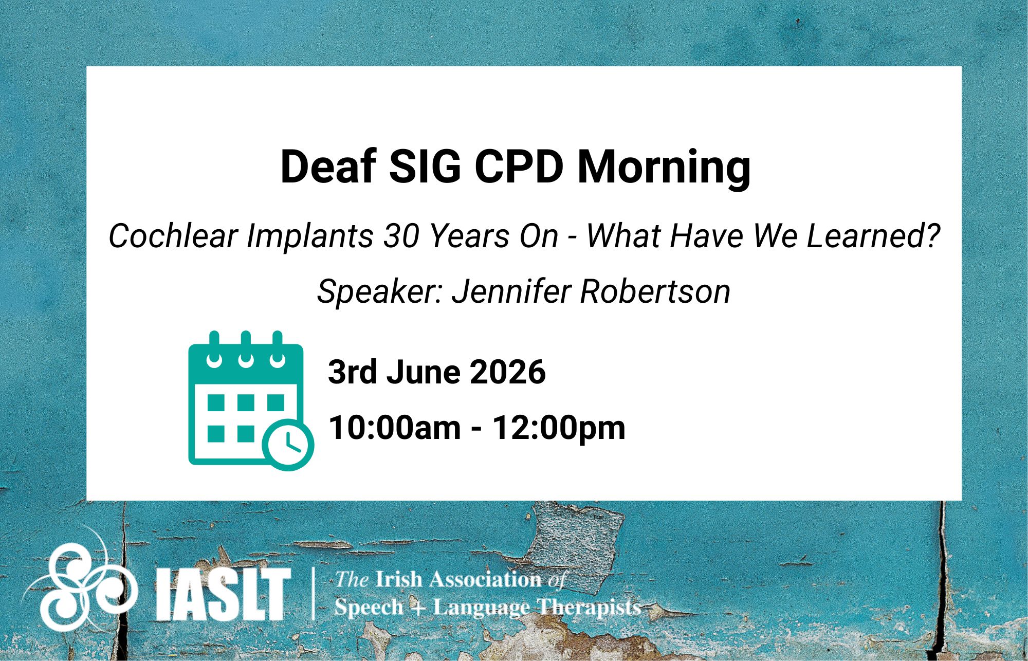 The Irish Association of Speech and Language Therapists (IASLT) is committed to producing and supporting a continued, varied, inclusive and evidence-based programme of CPD events for IASLT members and the wider SLT community. If you are interested in engaging with the IASLT in relation to a CPD event, please complete one of the forms here
