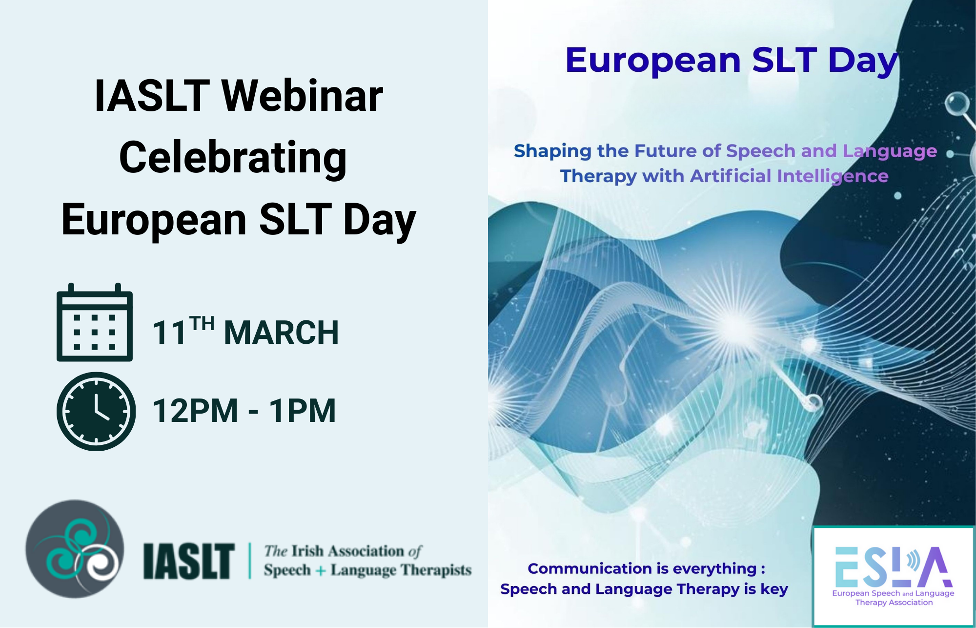 FREE FOR MEMBERS! Registration is now open for our annual IASLT webinar to celebrate European SLT Day. Join us to celebrate this years theme "Shaping the Future of Speech and Language Therapy with Artificial Intelligence".