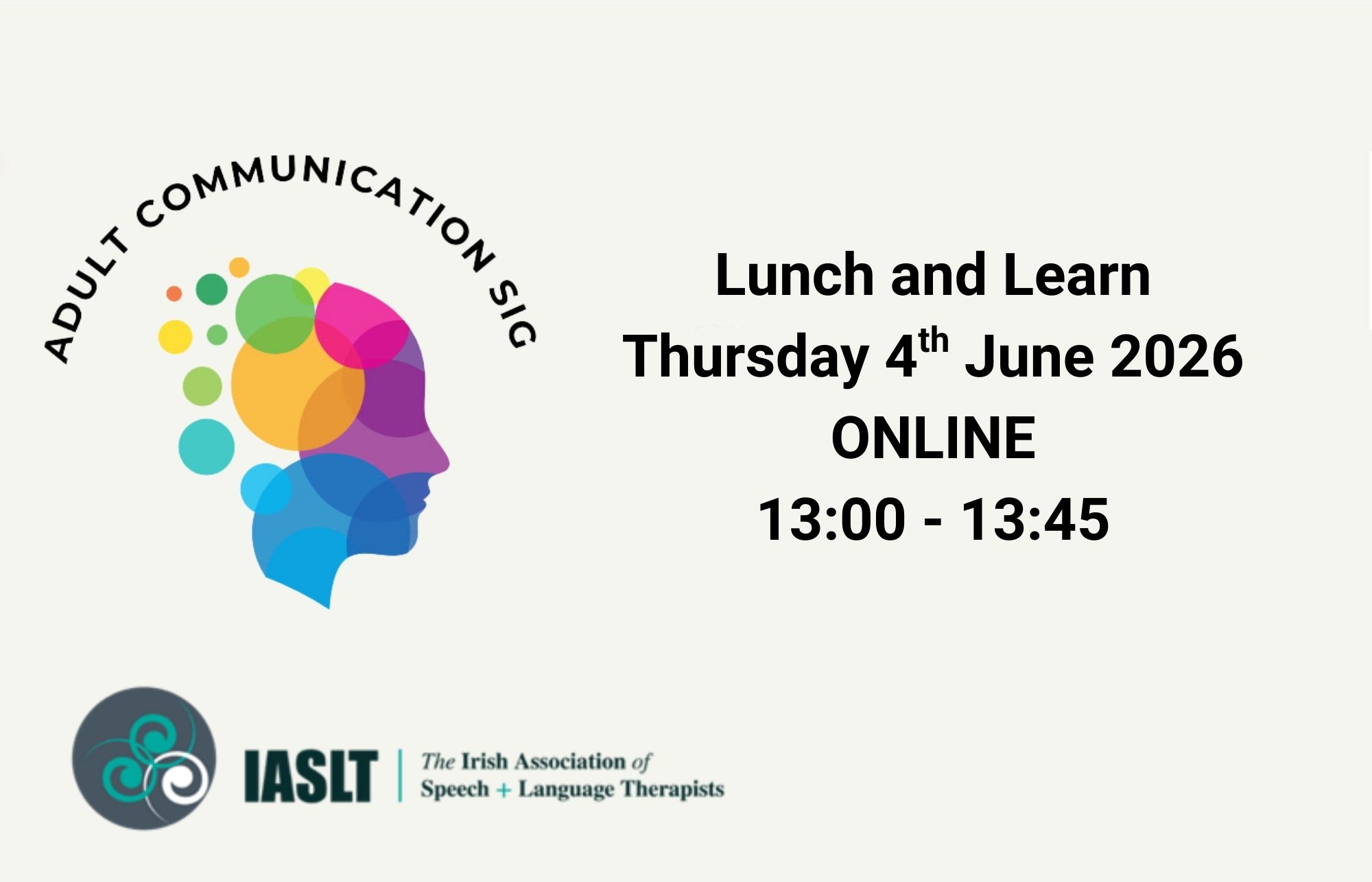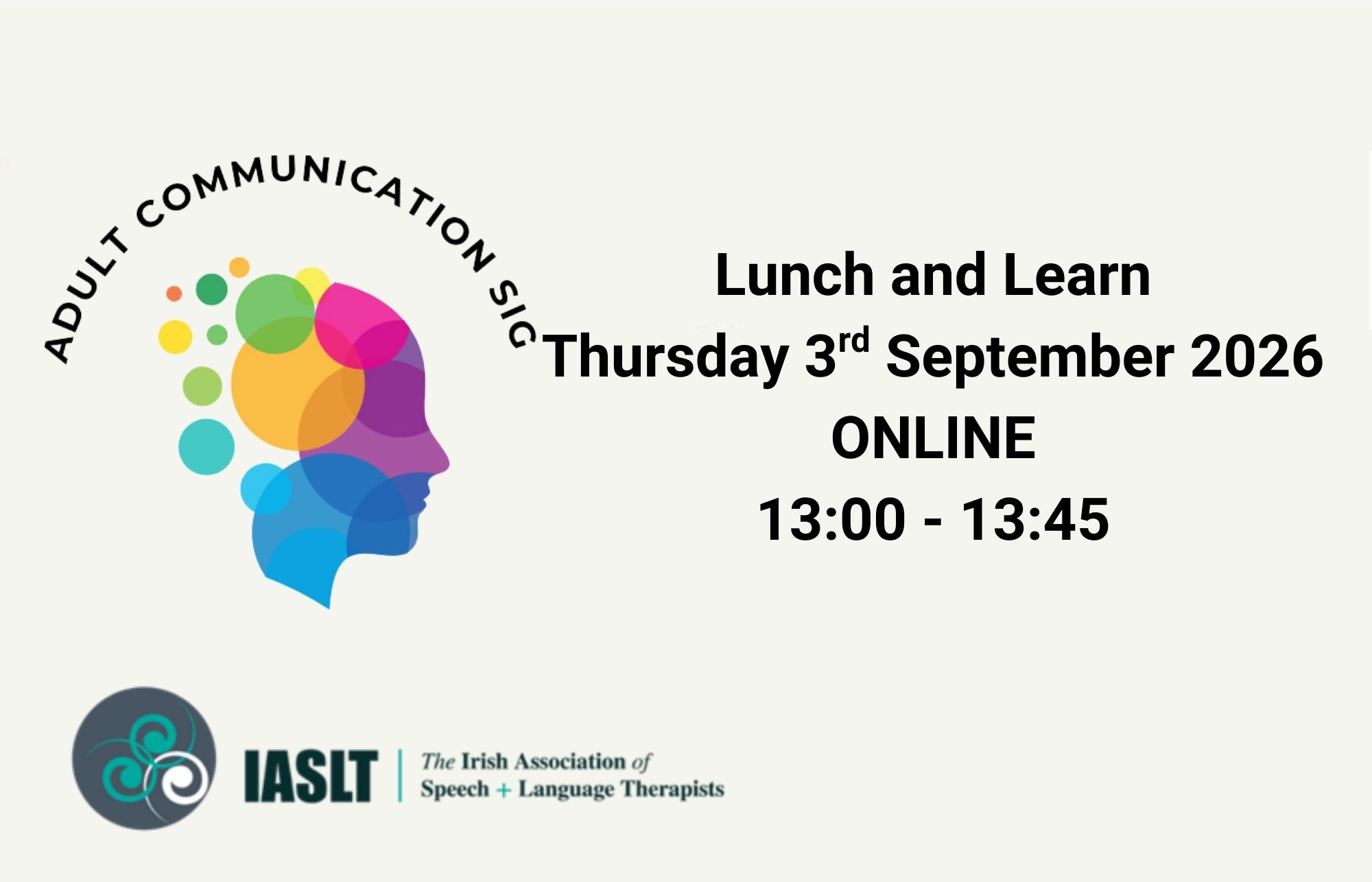 The Adult Communication SIG Lunch & Learn webinars are happening on the 12 March/4 June/3 Sept/3 Dec from 13.00-13.45.