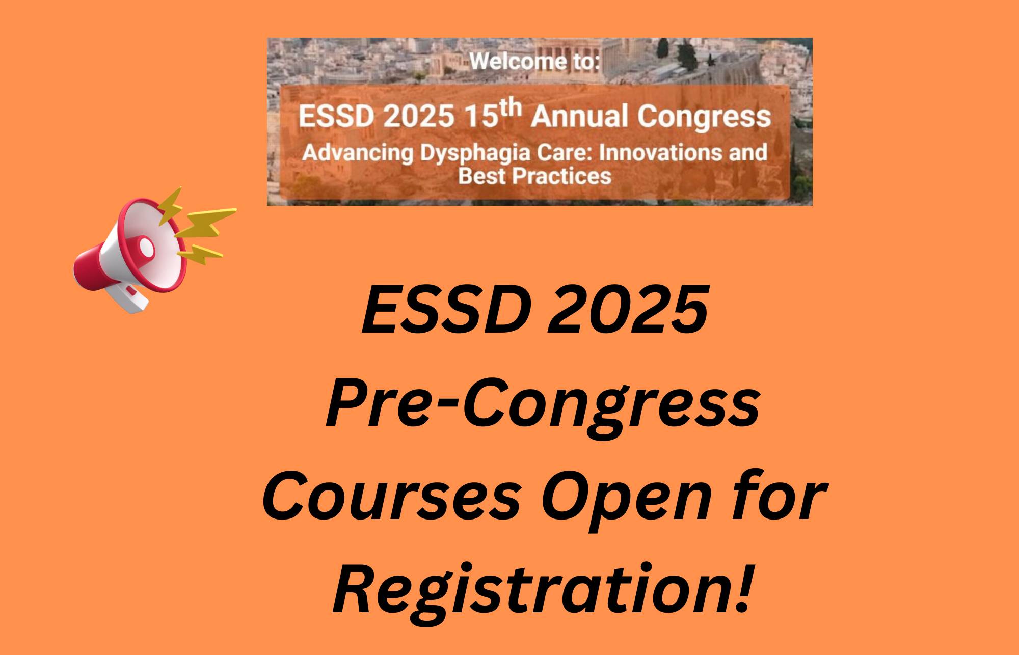 ESSD 2025 Pre-Congress Courses, taking place on October 7–8, 2025, just before the 15th Annual Congress of the European Society for Swallowing Disorders in Athens, Greece.